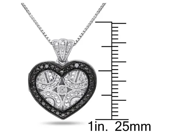 1/20 Carat (ctw) Black Diamond Heart Locket Pendant Necklace in Sterling Silver with Chain