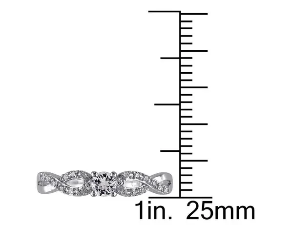 1/4 Carat (ctw) Lab-Created White Sapphire Infinity Ring with Diamonds in Sterling Silver Make your romantic attentions known with this shimmering created sapphire and diamond promise ring. Featuring a brilliant white round-cut created sapphire nestled between two swirling infinity loops, this wedding ring signifies your lasting commitment to love. Sparkling round-cut diamonds complete this piece, bringing added sparkle and shimmer to the band. Beautifully crafted in 0.925 sterling silver with a Polished Finish Stone Type: Sapphire; Color: White; 0.23 CTW; Quantity: 1; Brilliant Cut; Round Shape; Lab Created; Prong Setting Stone Type: Diamond; Color: G-H; Clarity: I2-I3; 0.08 CTW; Quantity: 20; Brilliant Cut; Round Shape; Dimensions: 3.5x3.5 mm; Natural; 4-Prong Setting Sapphire Gemstone is the Birthstone for the Month of September This Diamond Ring is the perfect gift for any birthday, anniversary, holidays, thank you, thinking of you, or for any reason at all SKU: 68DLG1000978CWS-P