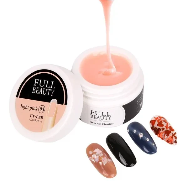 Type: Nail extension gel Composition: glass fiber, UV glue Color: transparent, light pink, nude pink, white Size:3.5*5cm Net content: 15ml Quantity:1pcs