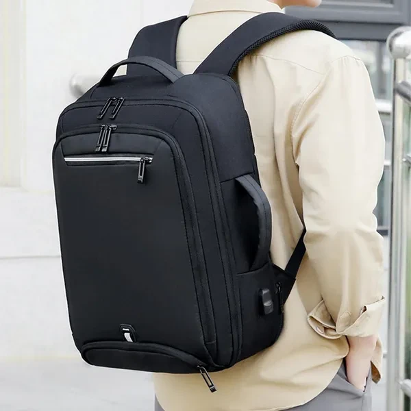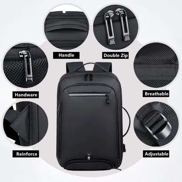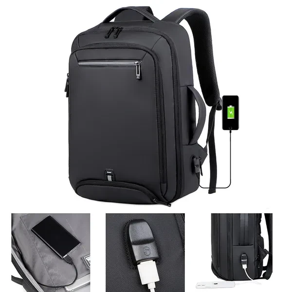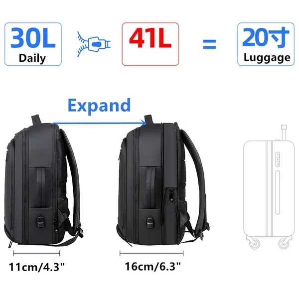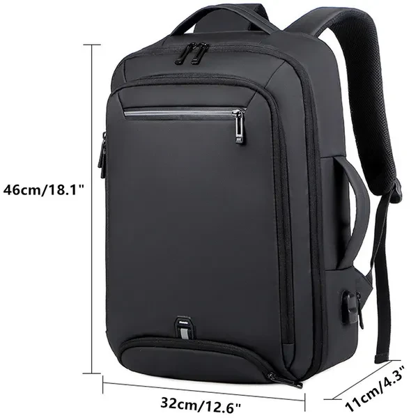 Specs: Material: High quality waterproof oxford Size: 18.1"x12.6"x4.3" Expand to 18.1"x12.6"x6.3"; fits 17.3" laptop Weight: 2.3pounds Features: ❤️Large Capacity and Organized: Large laptop backpack owns 13 independent pockets can accommodate lots of stuff like college supplies, travel accessories, clothes, stationery, notebook, card organizer ❤️Material: The laptop backpack is made of good environment-friendly oxford fabric with new function of water-repellent, which is quite durable ❤️USB Port: Built-in USB PORT is convenient to charge your cell phone by the connected power bank (POWER BANK is not included). ❤️Comfortable: This practical backpack with a foam padded top handle for long-time carry on. Comfortable back design with thick but soft multi-panel ventilated padding, gives you maximum back support. Breathable padding shoulder straps for a more comfortable fit, relieve the stress of shoulder ❤️Functional: A well-knit luggage strap allows backpack fit on luggage/suitcase, slide over the luggage upright handle tube for easier carrying, making your journey more convenient wherever you go. Its Humanized design makes it can be used at business trip, daily work, school, college, occasional travel and so on Notes: 1. Due to the different monitor and light effect, the actual color of the item might be slightly different from the color showed on the pictures. Thank you! 2. Please allow 1-2cm measuring deviation due to manual measurement.
