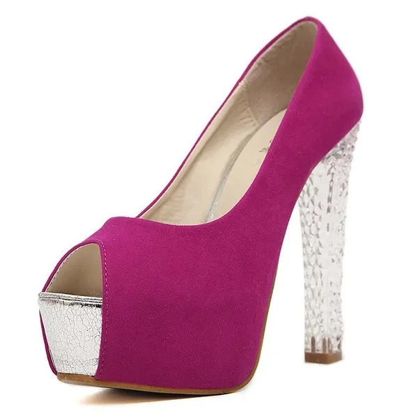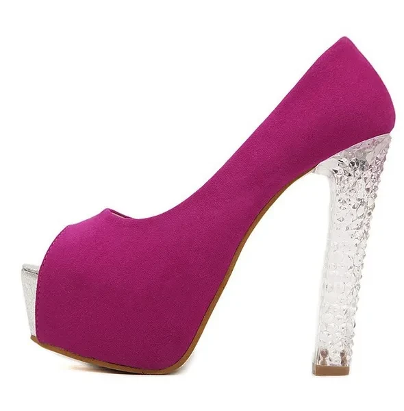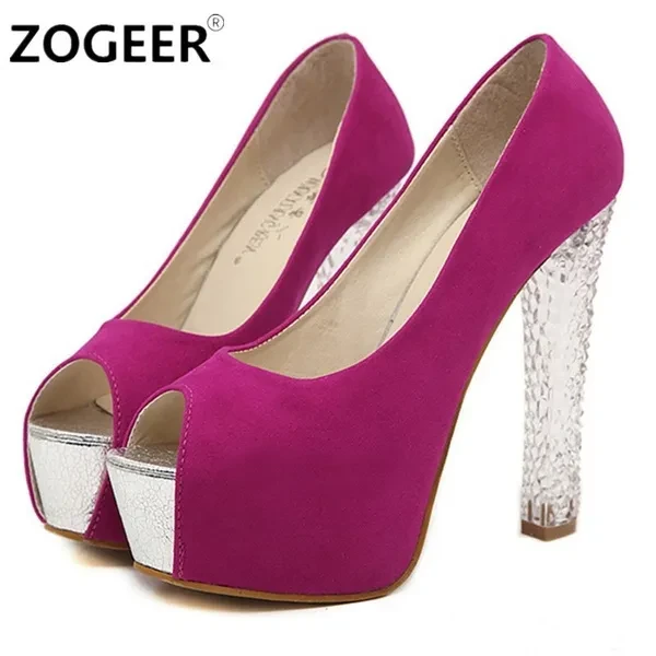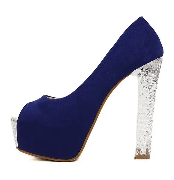 We suggest if you want make a correct choice you should choose by size chart in the images Brand Name:ZOGEER Gender:Women Item Type:Pumps Shoe Width:Medium(B,M) Process:Adhesive Season:Spring/Autumn Platform Height:3-5cm With Platforms:Yes Closure Type:Slip-On Toe Shape:Peep Toe is_handmade:Yes Insole Material:PU Upper Material:Flock Heel Height:High (3" and up) Decorations:Plain Leather Style:Soft Leather Style:Fashion Outsole Material:Rubber Occasion:Party Fit:Fits true to size, take your normal size Pump Type:Basic Lining Material:PU Model Number:T B 6165 Heel Type:Square heel Occasion:party,casual,wedding,dress Item Type:Pumps Shoe Size:34-39 Heel Height:13.5cm Platform:4.5cm Color:Rose,Blue,Silver Season:spring,autumn,summer Style:fashion,classics,sexy,sweet Heels shape:thick heels Fashion element:open toe,suede,crystal