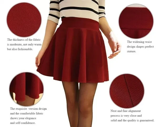 2017 Women Skirt Sexy Keep Warm Fall Winter Skirts Plus Size High Waist Short Skirt Black Red Skater Skirt For Women