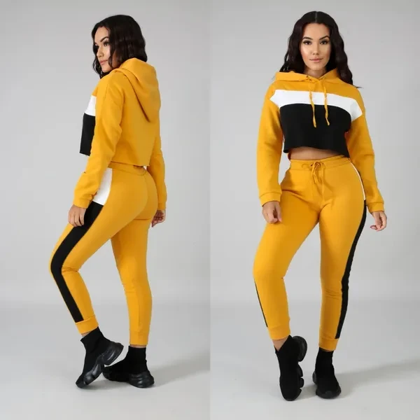Pattern: solid color Color: yellow, black, Product Category: casual suit Content of main fabric components: 81%-90% Top sleeve length: long sleeve Pants long: trousers Size: S,M,L,XL Style type: street fashion Style: pants suit Fabric name: cotton blend Main fabric composition: Spandex Suitable age: 30-34 years old Coat styles: jacket Applicable Gender: Women's Pants style: straight-leg pants Style: Sports