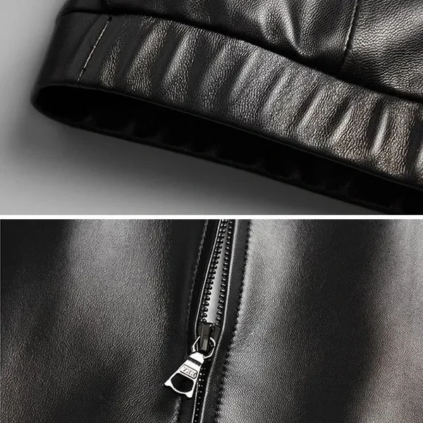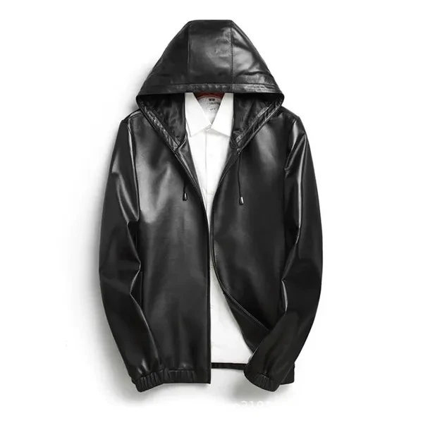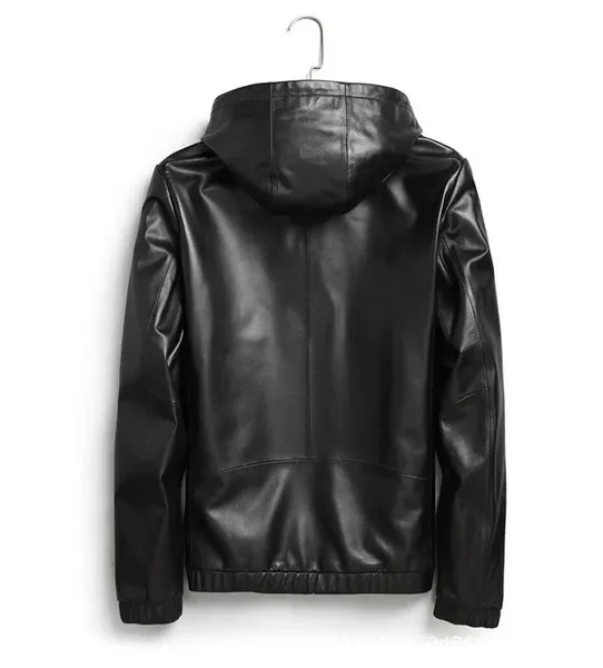 2023 Men's Real Leather Jacket Hoodie Men Genuine Lambskin Winter Leather Slim Motocycle Jacket Smart Casual Leather Jackets