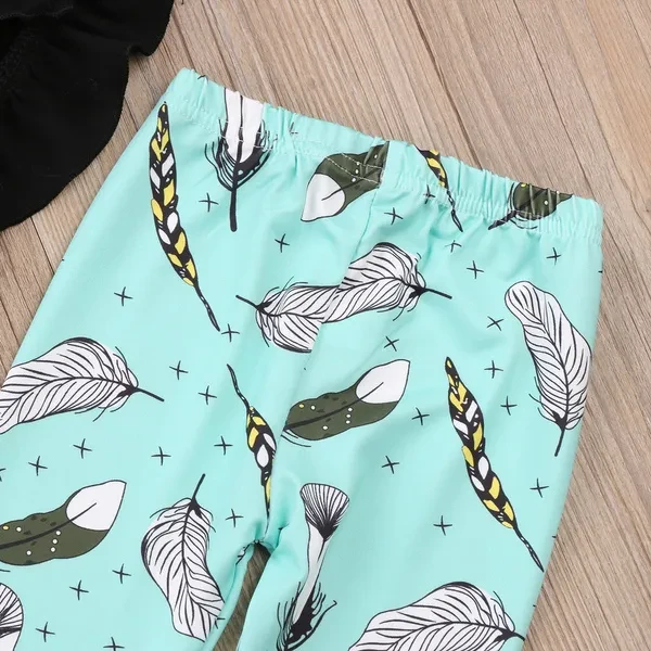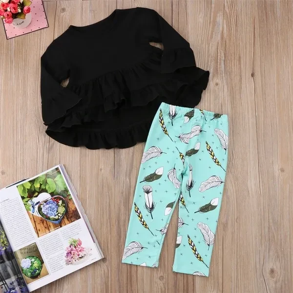 2PCS Toddler Kids Baby Girl Clothes T-shirt Ruffle Tops+Leggings Pants Outfit Set 1-6Y