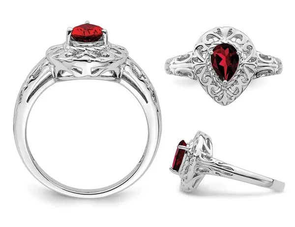 3/4 Carat (ctw) Teardrop Garnet Ring in Sterling Silver