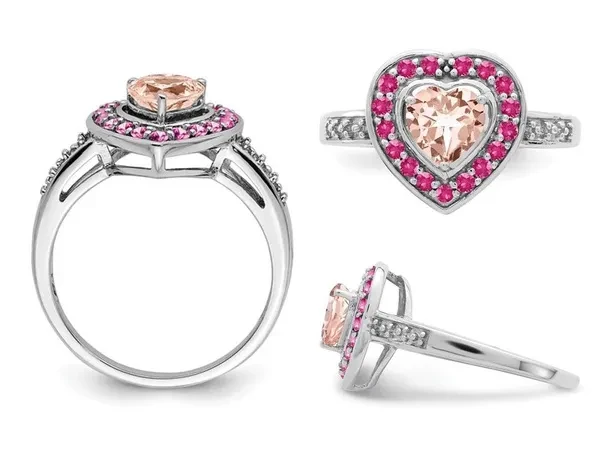 4/5 Carat (ctw) Morganite Heart Ring in Rhodium Plated Sterling Silver