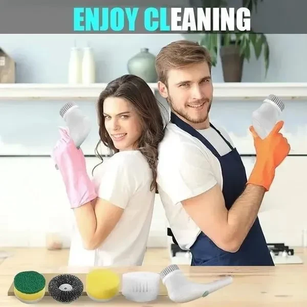 5 In 1 Multifunctional Wireless Electric Cleaning Brush Rotating Scrubber Kitchen Dishwashing Brush Sink Cleaning Tool Bathroom Bath Cleaning Electric Brush Scrubber Household Tools