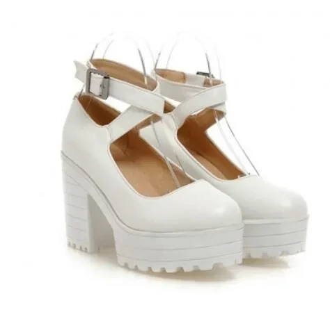 ender:: Women tem Type:: Pumps ccasion:: Party tyle:: punk pper Material:: PU it:: Fits true to size, take your normal size latform Height:: 0-3cm ining Material:: Synthetic eel Height:: Super High (8cm-up) nsole Material:: PU ith Platforms:: Yes losure Type:: Buckle Strap eel Type:: Square heel oe Shape:: Round Toe utsole Material:: Rubber ashion Element:: Cross-tied rand Name:: PXELENA ump Type:: Ankle Strap eason:: Spring/Autumn odel Number:: 7.7 olor:: Black,White,Wine Red ize:: Eur 35-43 eel:: 3.7 inches latform:: 1.6 inches