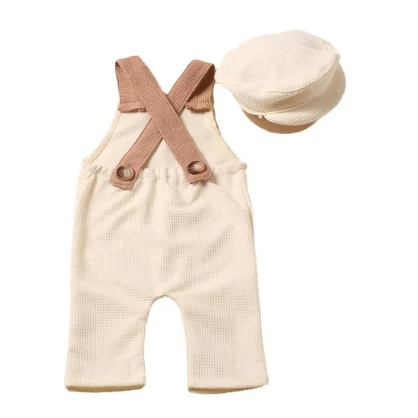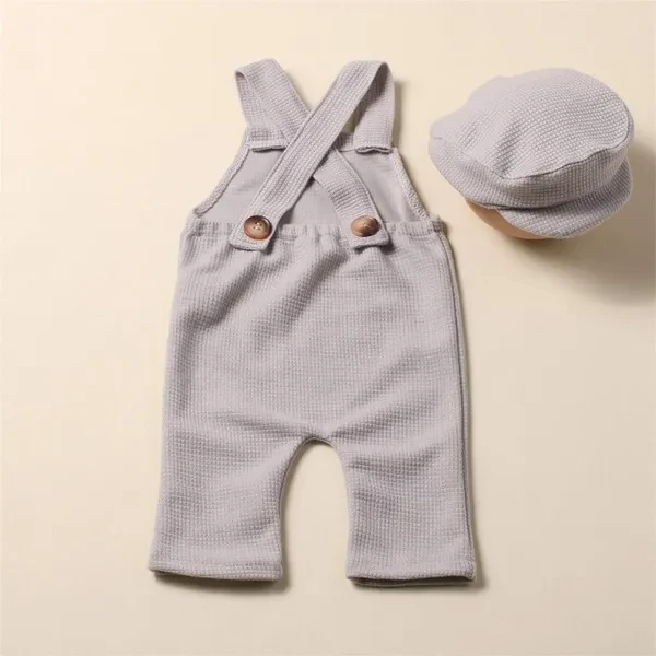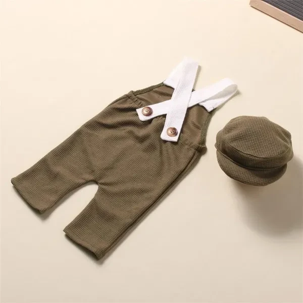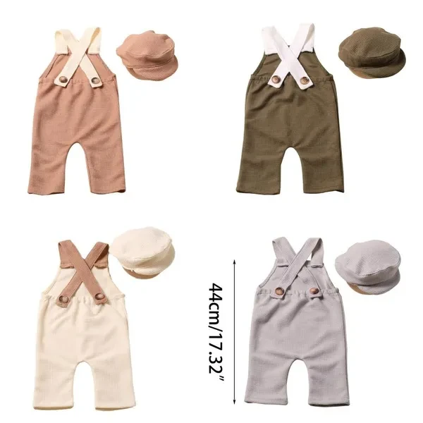 Baby Photography Props Gentleman Uniform PeakCap Overalls Photo Outfit Newborns Photo Clothes Infant Posing Suit 2Pcs COY