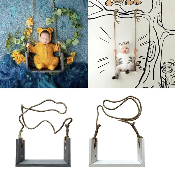 Baby Photography Swing Photo Props Newborn Small Wooden Bench Posing Seat Photoshoot Prop for Baby Photo Studio DOU