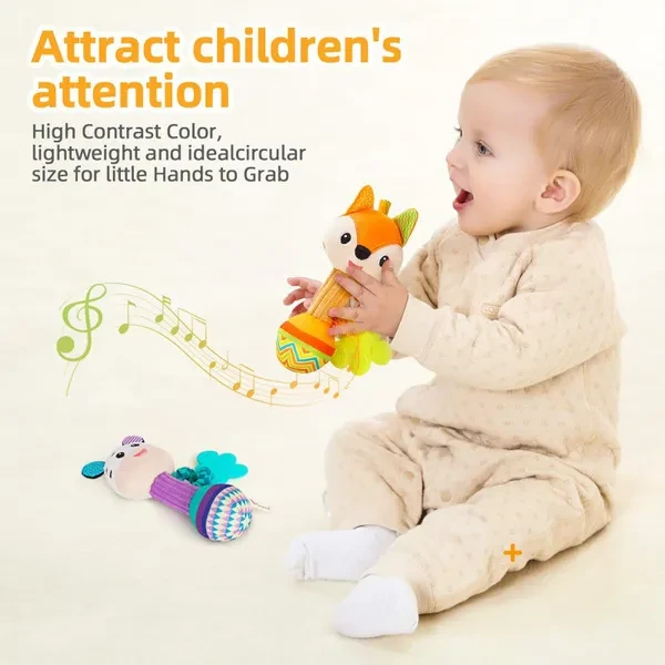 Set of 2 Newborn Rattle Toys :Set of 2 pcs Baby toys are ideal first rattles from birth on up. The rattle makes a fantastic sound when shaking, attracts the baby's attention very easily, stimulates their visual development, and trains the baby's hearing Rattles for Babies 0-6 Months : Inspired by the fact that babies love to grab onto their parent's fingers, These newborn toys are a suitable size for a baby's hand, the rattles and teether toys are lightweight so they are easy for babies to grab, its own to encourage baby's early grasping skills Baby Rattle :Little hands stay active with these colorful Animals making baby explores patterns, textures, and sounds. Ideal for fun, The baby's sensory learning toys are suited for 0-3 months, and baby rattles 0-6 months QUALITY & SAFETY :At home or on the go, these cute Hand rattles Toys have for multi-sensory play. Made from high-quality material, cotton and plush, with no smell, and is non-toxic, safe, and soft for babies to play with. baby toys 0-6 6-12 months NEWBORN TOYS GIFT :Our Koty soft rattle toys are ideal first rattles for babies from birth on up. A special gift for newborn birthdays Would be a great Christmas Gift Idea as Holidays, birthdays, Halloween, Thanksgiving, and New Year for baby boys and girls