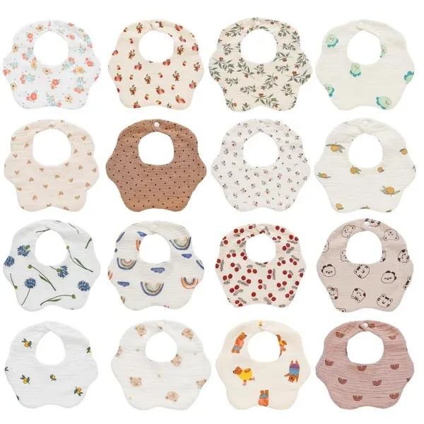 Baby Teething Bib Newborn Feeding Bib Cloth Towel Bandana Burp Cloth Ruffle Bib 4 Layer Infant Unisex Soft Cotton Bibs HAI