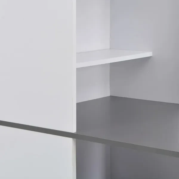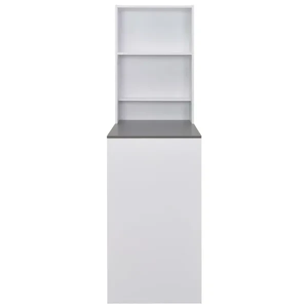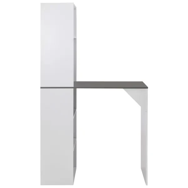 This bar table is the perfect choice to prepare and enjoy drinks for small flats or where space is a little limited. Its contemporary design makes the table a chic addition to your kitchen or dining area. The construction of large storage cabinet will save you plenty of space that you can put bottles of wine or other items on. Thanks to the sturdy chipboard, it is exceedingly durable, stable and easy to clean. The L-shaped frame gives the table optimum stability. You will surely feel more comfortable and enjoyable to sit beside this beautiful bar table when drinking wine or coffee. With the ideal height and special design, this high table will certainly complete the decoration of your house. Colour: White with grey table top Material: Chipboard Overall dimensions: 115 x 59 x 200 cm (L x W x H) Table dimensions: 115 x 59 x 107,5 cm (L x W x H) Cabinet dimensions: 59 x 35 x 200 cm (W x D x H) With ample storage space