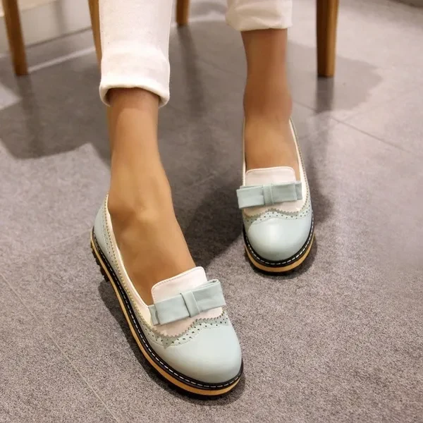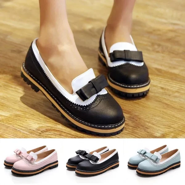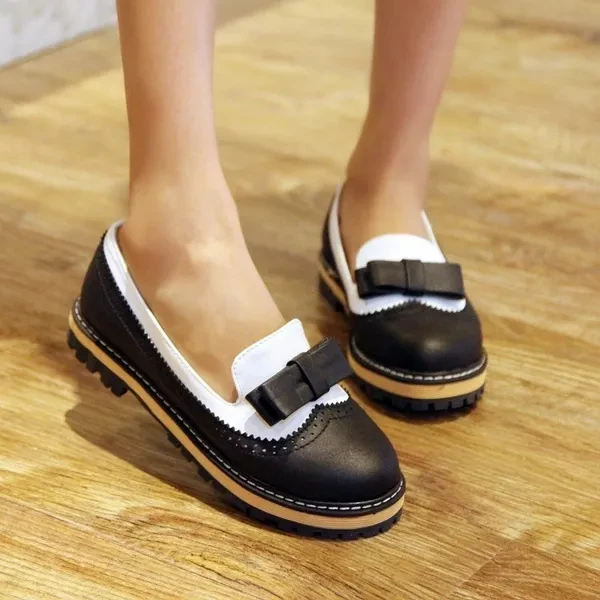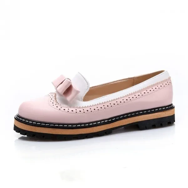 Bowtie Loafers Women Shoes Platform Brogue Shoes Woman Casual Creepers Sweet Patchwork Oxfords Slip On Flats