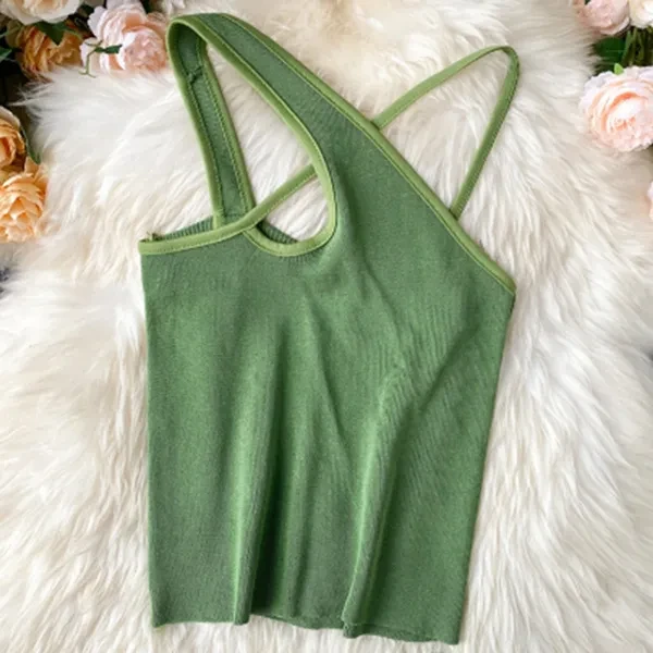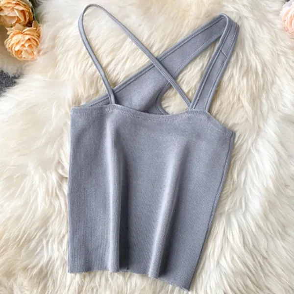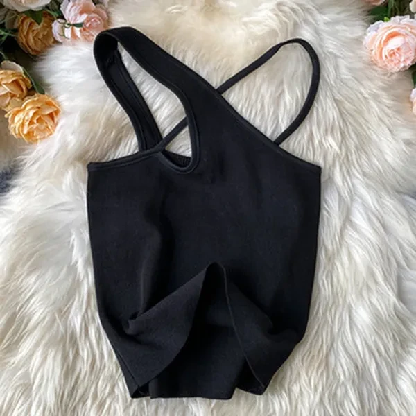 Camisole With Feminine Sense Outer Wear Cross Short Cropped Halterneck Top Bottoming Shirt