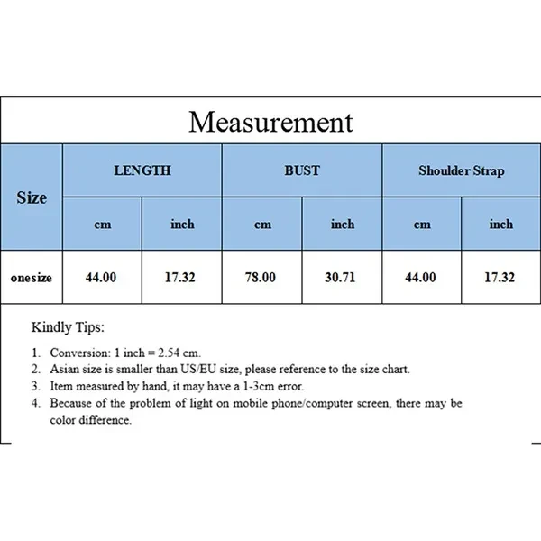 Features Color: white,red,grey,green,black,khaki Size: The length of the dress is about 43.5cm, the length of the shoulder strap is about 44cm, the bust is about 78cm, and the error is about 3cm Material: polyester fiber (polyester) Package Content: 1 PC Warm Tips: 1. Conversion: 1 Inch=2.54CM; 2. Color may little vary due to different display setting; 3. Size might be slightly deviation due to hand measurement, please allow 1-2 cm difference.