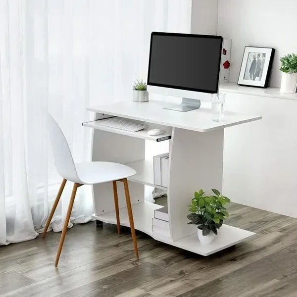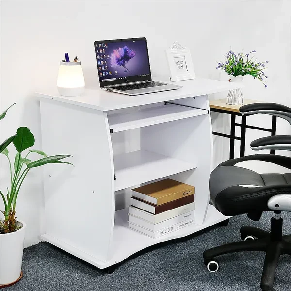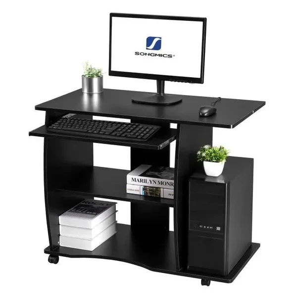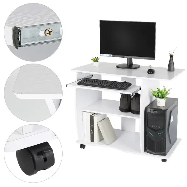Description: 1. stable and sturdy structure, chipboard + desktop cover seamless melamine veneer, moisture-proof, scratch-resistant, non-fading; 2. practical design - the desktop surface is 90 x 50 cm, the wide area can better meet your work requirements. The retractable keyboard stand (58 x 30 cm) reduces noise and ensures a quiet working environment. The two shelves under the table can be kept, books, plants, books, etc. In addition, the large space on the right side of the desktop (24 x 46 x 67 cm) is provided for the PC. 3. easy to move - On the bottom there are 4 wheels, 2 of which are equipped with brakes that can easily move the table top, reduce noise, easy to clean and better protect the floor. 4. easy to assemble and clean assembly is easy to assemble with the assembly instructions and numbered parts shown, easy to clean with a damp cloth; 5. versatility: suitable for offices, bedrooms, study, etc ... Specifications:: - Product size: 90 * 50 * 75cm - 15MM chips triamine board E1 edge banding - Surface covered with melamine veneer Delivery: - Computer desk * 1 - Assembly instructions * 1 - Mounting screws * 1 Hope you have a good shopping!