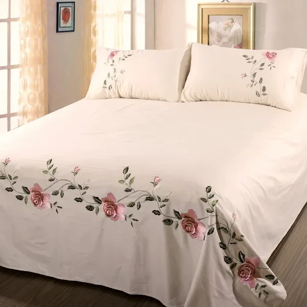 Filling: None Type: Sheet & Pillowcase Sets Material: Cotton Grade: Grade A Thread Count: ≥600s Pattern: Embroidered Pattern Type: Twill Style: Twill Technics: Woven Use: Home Fabric Count: 60 Quantity: 3 pcs Color Fastness (Grade): National Standards Fabric Density: 133X include:3pcs:1 flat sheet +2 pillowcases Full : flat sheet 230x250cm pillowcase48x74cm King: flat sheet 250x250cm pillowcase48x74cm Queen: flat sheet 250x270cm pillowcase48x74cm