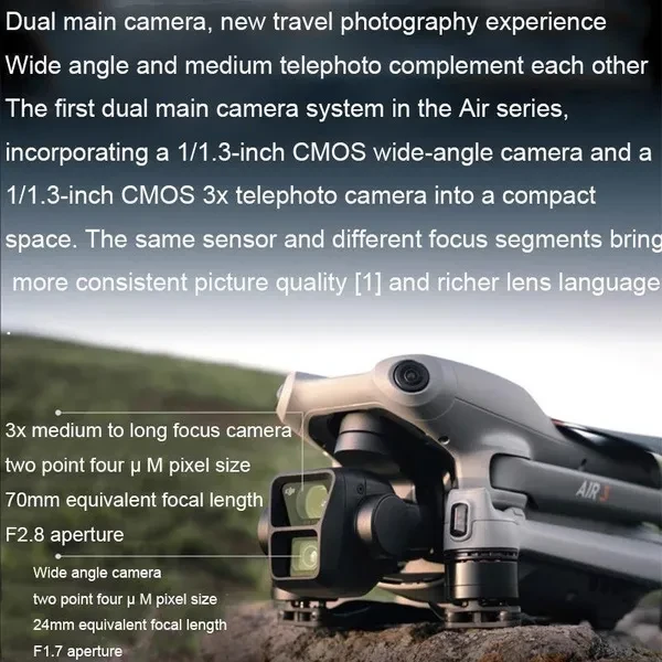 D-JI Air 3 Dual Camera Aerial Photography Travel Drone Medium To Long Focus Wide Angle HD Flight Drone