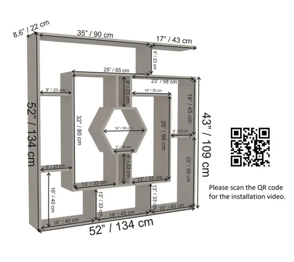 Overall - 52.7'' H x 52.7'' W x 9'' D
