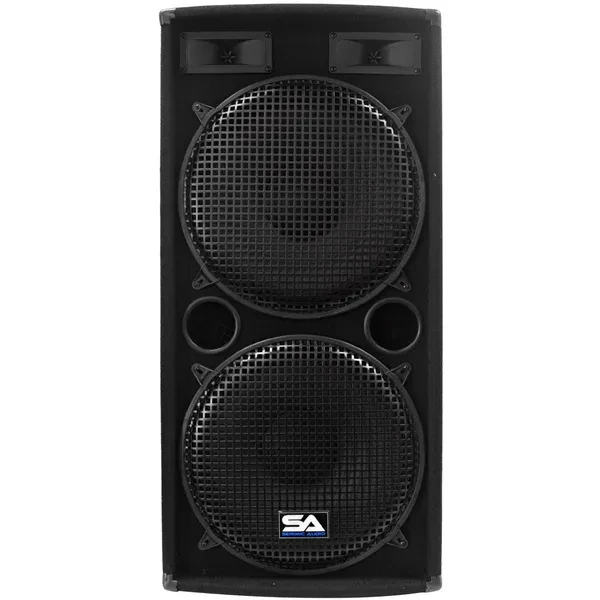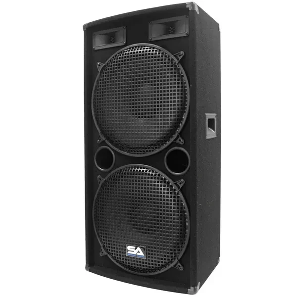 Model # - SA-155.2 Woofers: 2 15" - each  woofer has a 50oz magnet with a 2" voice coil 500 Watts RMS & 1000 Watts Peak Wired at 4 ohms 45Hz to 20KHz Sensitivity: 96 db Two 2x5 Tweeters 5/8 plywood front panel Steel grills over each speaker Pocket handles Terminal cup with two 1/4" inputs Can be Daisy Chained Dual ports 38" tall x 16" wide x 12" deep This speaker is brand new. One year warranty