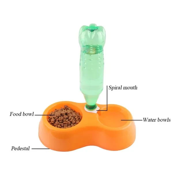 Product Feature: It can provides endless clear fresh water. Bowl is large and detachable and it's easy to be cleaned. Anti-spill check valve helps avoid overflowing while refilling. Resin material, anti-skid, anti-broken, stain resistant, easy to clean. Double bowl, one side for grain,the other side for water. This product does not include a bottle, please prepare for its proper bottle. Product Name:2-in-1 Pet feeder Item Type: Bowls Applicable group: Dog/Cats Breed: Universal Volume of max weight: 250g per time Volume of max water: 250ml per time Material: Plastic material Shape: Round Size: seen as the photo Color: Blue/Red/Rose /Orange/Light green Weight: 60g/pcs Package including: 1 pcs/set