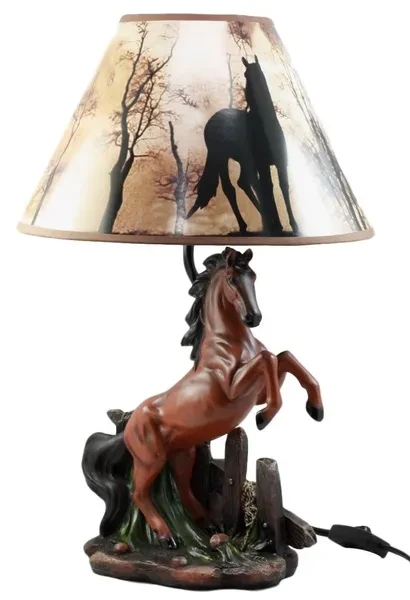 • This Rearing Horse Lamp comes with the shade as pictured. Made of polyresin, hand painted and polished, the quality finish is superb! Because all our products are individually hand painted work of art, the color tone may vary from the pictures. • The overall lamp measures about 19" tall. The shade 12" in diameter and 7.25" tall. • The body of the lamp measures approximately 13.25" tall, 8.5" long and 5.5" deep. • Use only Type A light bulb (not included), Max 40 watt. Approx. 4 1/2 ft. UL Approved electric cord with on/off switch. • This is an Ebros Gift exclusive collection.
