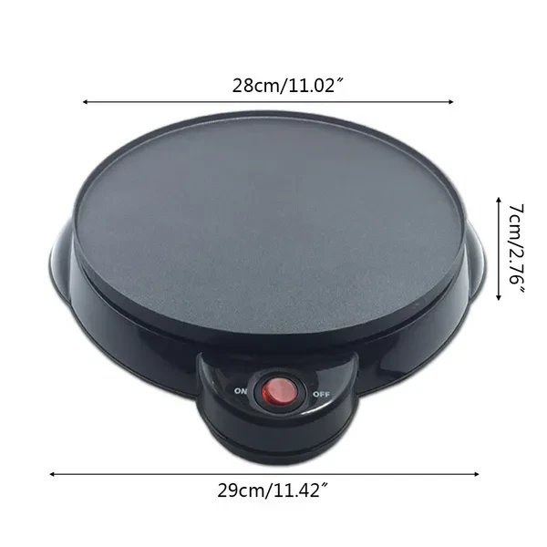 100% brand new, high quality Features: Full crepe maker for good times to share, for all tastes: sweet or savory Non-stick coating for easy cleaning Friendly cooking diameter of 30cm for the whole family Specifications: Item Type: Family Pancake Maker Material: Aluminum alloy Rated voltage: 220V / 240V Rated frequency: 50 / 60Hz Diameter: 23cm / 9.06in Size: approx.28x7x29cm / 11.02x2.76x11.42in Color: Black Quantity: 1 Pc Note: Transition: 1cm = 10mm = 0.39inch. Please allow 0-1cm error due to manual measurement. Pls make sure you do not mind before you bid. Due to the difference between different monitors, the picture may not reflect the actual color of the item. Thank you! Package Includes: 1 x Family Pancake Maker (other accessories demo in the picture is not included.)