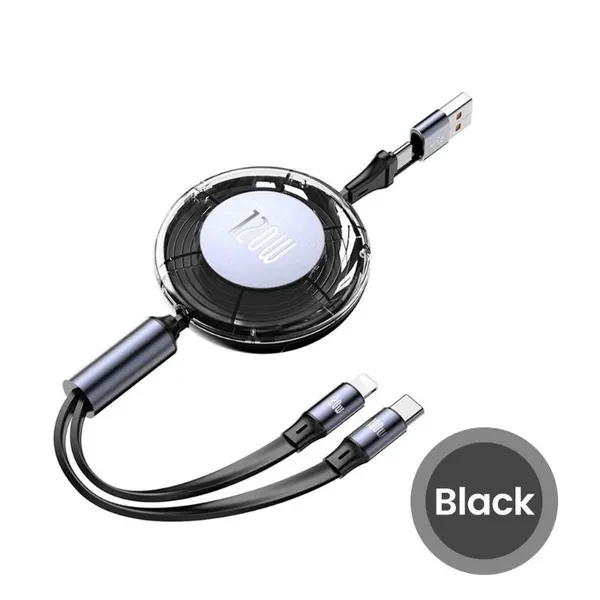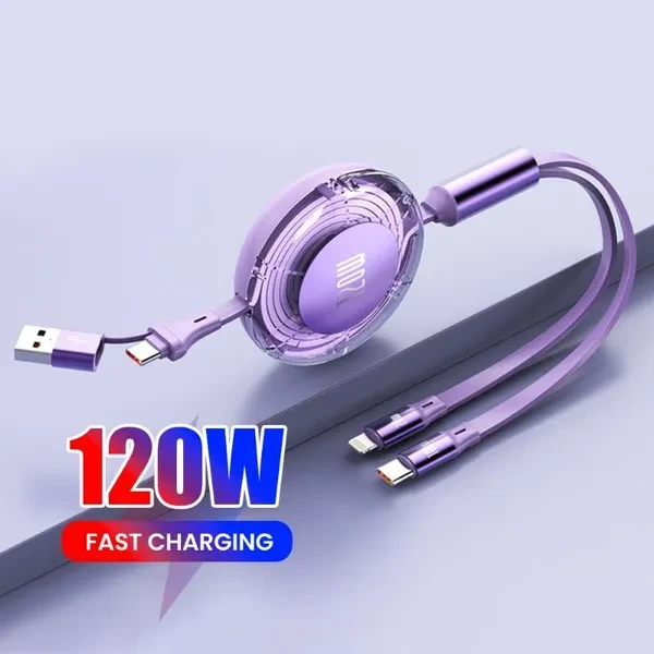 Brand Name:Elough Product Name :120W 3-in-1 Fast Charging Cable Material : ABS + PC + TPE + Aluminum Alloy + Drip Glue Certification : RoHS,FCC,CE Input : USB-A&C Output : ios(27W)/Type-C( 65W ) Length : 1.2M Color : black, blue, orange, pink, purple Origin : Mainland China Description: • 3-in-1 Cable :This cable is compatible with Huawei/Honor, iPhone , and Samsung devices, making it a versatile option for all your charging needs.For Iphone 15 series • Fast Charging :With its fast charge feature, you can quickly power up your devices without wasting time.