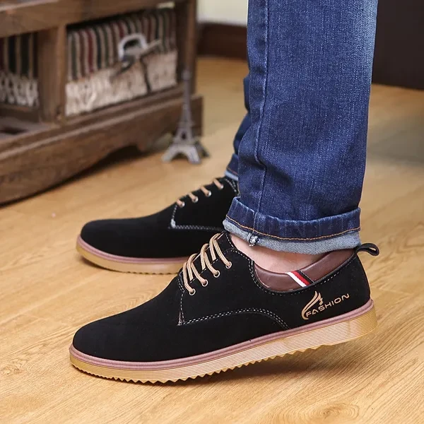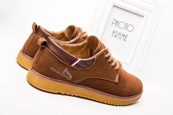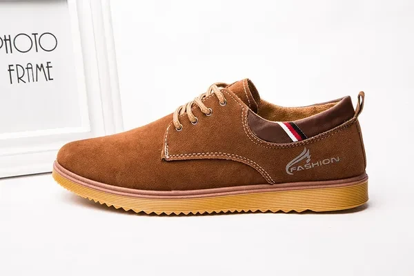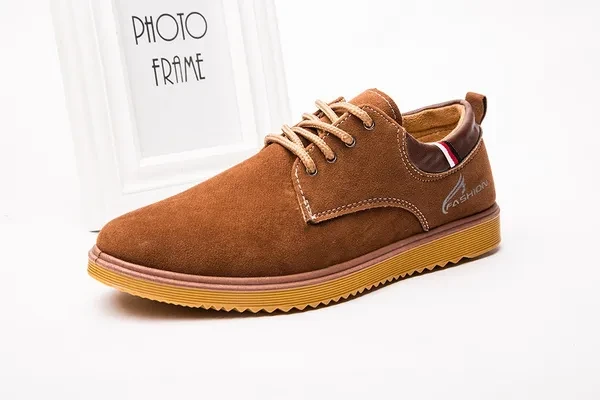 Come without Shoe Box! Item: H03 Upper material: suede leather Sole material: Dichotomanthes Whether inventory: no Gender: Male The upper height: low Sole craft: plastic injection shoes Cortical features: anti velvet skin In the way: the front tie Popular elements: flange, thread, tassel, muffin with, totem, leather stitching Function: Non Slip Pattern: carved wing Suitable for seasons: winter, spring, autumn Color: black, blue, Khaki Size: 39,40,41,42,43,44,39-44 :