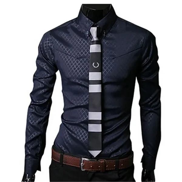 Description Specifications: dress shirt, business style. It features long sleeve, cotton blend, slim fit and button. It can show your good body figure and make you be more confident at office. Type: Dress Shirt Gender: Men's Size Type: Regular Material: Cotton Blend Sleeve Type: Long Sleeve Garment Care: Hand-wash Style: Fashion, Business, Casual Seasons: Spring, Summer, Autumn Occasions: Daily Life, Office, Business, etc Features: Button-Front, Slim Fit, Notes: This is Label Size(Asian/China size)about 2/3 sizes smaller than US AU EU size! Please, make sure of these actual measurements will fit you! The tie is not included.