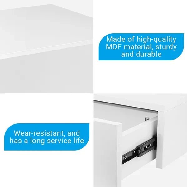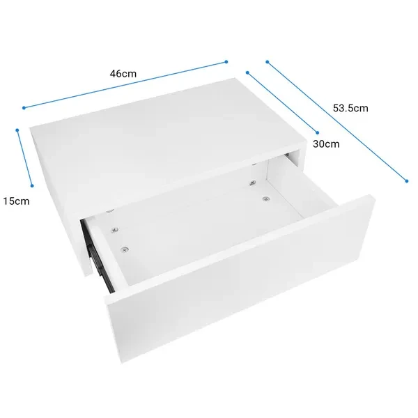 1. Floating bedside table, simple and stylish, exquisite craftsmanship, suitable for decorating your bedroom. 2. The desktop can be placed alarm clock, mobile phone, light, photo frame and other decorations. 3. Made of high‑quality MDF material, sturdy and durable, wear‑resistant, and has a long service life. 4. With a seperate drawer, can store wallets, keys, books, remote controls and other items. 5. Easy to assemble, can be directly installed on the wall, saving space, suitable for bedroom use. Specification: Item Type: Beside Table Material: MDF + Pine Wood Color: White Load-Bearing: 25kg / 55.1lb Weight: Approx. 7250g / 255.7oz Product Size: Approx. 30x46x15cm / 11.8x18.1x5.9in Package List: 1 x Floating Beside Table 2 x Guide 1 x Accessories Kit 1 x Manual Note: 1.Please kindly note that this product needs to be assembled by yourself. 2.Please allow 0‑1 inch error due to manual measurement. Thanks for your understanding. 3.Monitors are not calibrated same, item color displayed in photos may be showing slightly different from the real object. Please take the real one as standard.