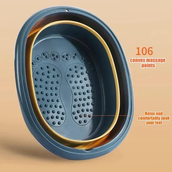 【Foot bath tub with massage acupoints and protruding points, easy to fold and store, saving space. Available in three colors】 Comfortable foot massage and therapy: This foot bath is equipped with 106 bottom massage protrusions and raised massage points for acupressure massage. It can effectively stimulate meridians and relieve fatigue. When soaking your feet, you can put foot salt or ginger slices into the water. The massager at the bottom of the foot bath can also help you clean dead skin on the soles of your feet. Space saving: A relatively bulky foot bath, this foldable foot bath can greatly save space. When folded, the foot basin is only 2.9 inches high and can be quickly unfolded and folded. Foldable foot baths can be easily placed in the bathroom, under the bed, or hung up. Thicker and larger capacity design: The foot bath basin is made of PP and TPE rubber, making it more durable. Thickened materials can effectively extend the cooling time of hot water, are reusable, and are easy to dry. The foldable foot bath is 9.8 inches high and can hold approximately 15L/4 gallons of water. A large capacity can help your feet stretch better. Release the fatigue of the day: This foot bath massager allows you to enjoy the comfort of a foot bath. Soaking feet can soothe muscles, moisturize the skin, and relieve pain when standing for hours or walking in uncomfortable shoes.
