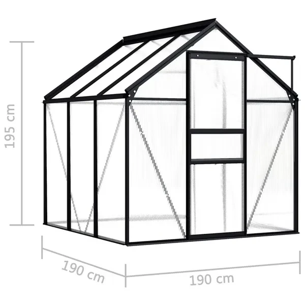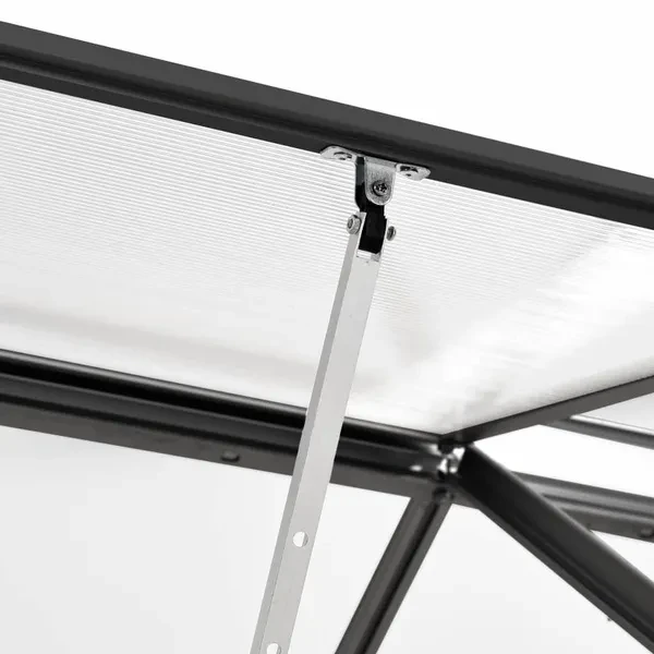 This spacious greenhouse has a total surface of 3.61 m². It can accommodate a considerable number of plants, and will be a great solution for protecting your plants from the cold weather. Made of polycarbonate panels, this solid greenhouse is UV resistant and thermally insulated. The greenhouse has a sturdy and maintenance-free aluminium construction for extra stability. The gutter system effectively allows water drainage, and the roof vent ensures optimal ventilation on hot days. Roof panels are fixed with metal clips, ensuring its durability and long-term use. Our greenhouse is easy to assemble. Please note the foundation is not included; and the roof of our greenhouse cannot withstand heavy snowfall.