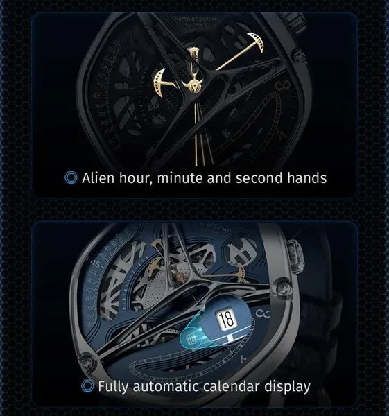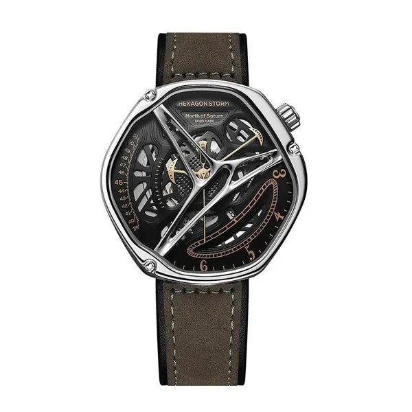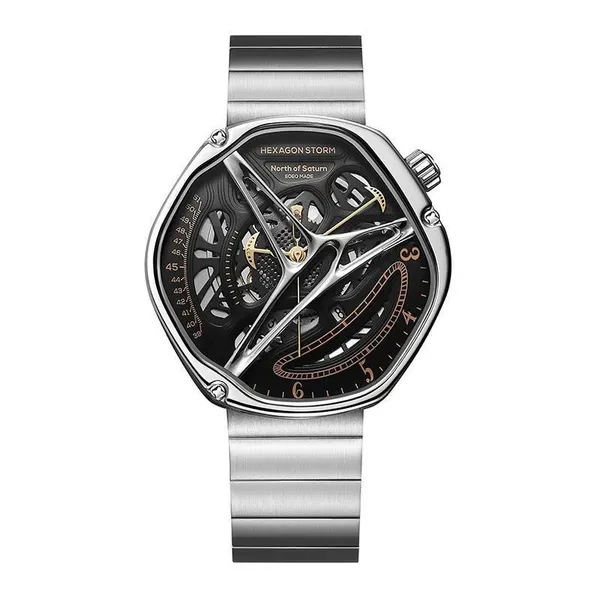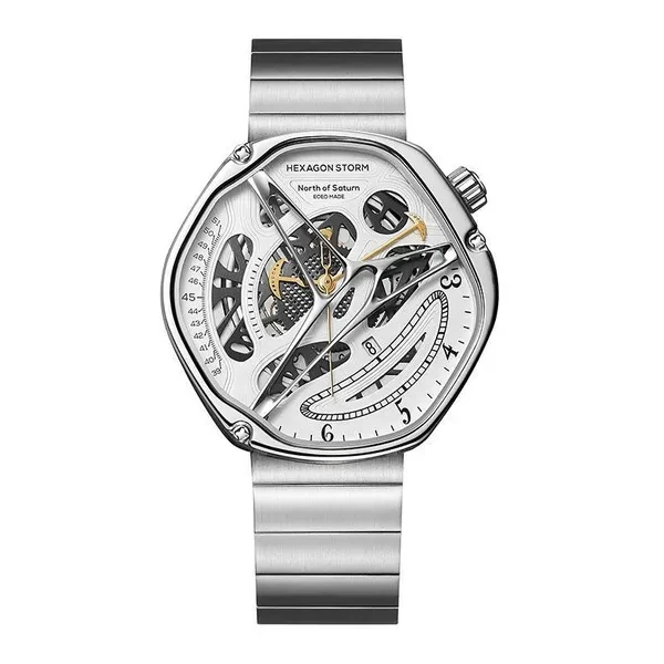 Hexagon Storm Mechanical Wristwatches Series name Hexagon Storm Movement type: automatic winding mechanical movement Power reserve up to 36 hours Pointer style: Special-shaped three-pin type Dial diameter 44 mm Dial thickness 13 mm Strap width 20 mm Watch circumference 240 mm Watch mirror Sapphire anti-glare mirror Case material: 316L stainless steel Dial Color Crescent White/Prussian Blue/Graphite Black Strap material One bead stainless steel strap/imported first layer cowhide Buckle type Classic double-button butterfly buckle Waterproof rating 5 ATM Warranty service One year warranty Hexagonal Custom Dial: Movement type: mechanical movement Pointer style:specual-shaped three-pin Watch band type: Domino steel band/ Leather band Crown type: screw-in type Clasp type:classic double-button butterfly buckle 48h Power Reserve -10/+15 seconds/day range 21600 times/hrotation frequency 316L Stainless Steel Dial color: white/black/blue Strap material: stainless steel/ leather Watch mirror: sapphire anti-glare mirror