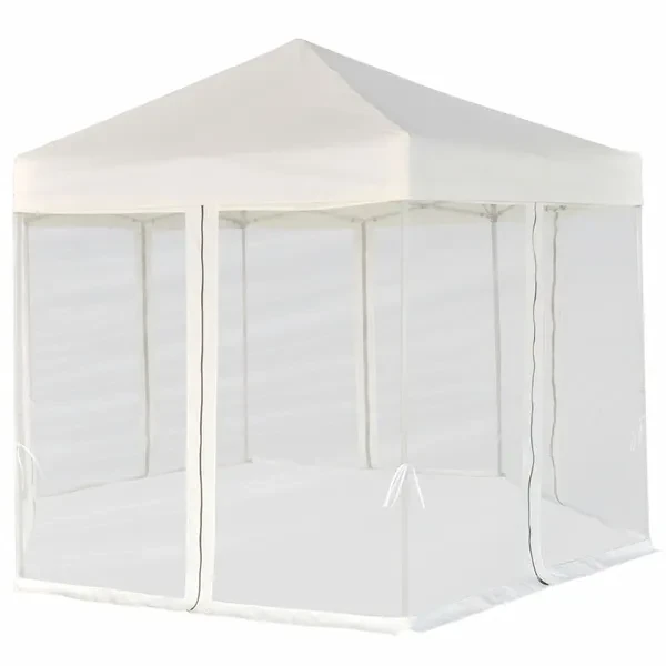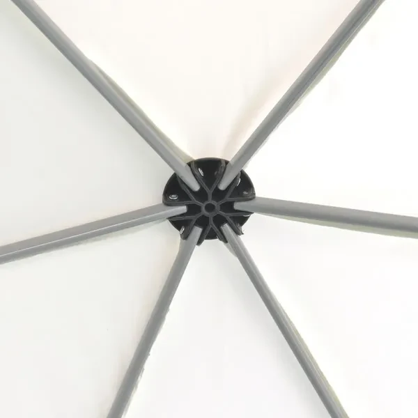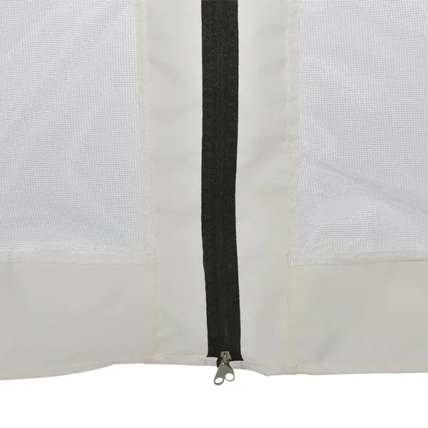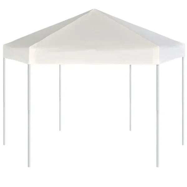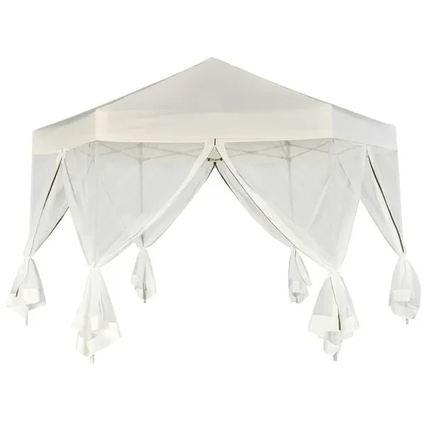 This folding gazebo will be ideal for a wide range of outdoor functions, such as shows, weddings, parties, BBQs, festivals and so on. You can also install it in your backyard as a large sunshade for your family and friends. Thanks to the heavy-duty, powder-coated steel frame and solid hexagonal construction, this pop-up tent is extremely sturdy and durable. The roof is made of polyester fabric with a PA coating, and is water resistant. The 6 included mesh side walls can not only be completely closed with double zips, but also be fastened to the posts with ropes (included in delivery) for easy entry as well as air ventilation. Assembly is really easy. The tent can also be easily folded for storage and transport. Installation accessories such as fastening ropes and ground pins are also included in delivery. Please note that we recommend treating the canopy with a waterproofing spray if the marquee is subjected to heavy rainfall. Tarp colour: Cream white Side wall colour: Cream white Frame material: Powder-coated steel Roof material: 220 g/m² polyester with PA coating (water resistant) Dimensions: 3.6 x 3.1 x 2.65 m (L x W x H) Diagonal length: 3.6 m Side length: 1.8 m Leg height: 2 m Including 6 mesh side walls with double zips Foldable for easy storage and transport Delivery also includes fastening ropes and ground pins Assembly is really easy Fabric: Polyester: 100%