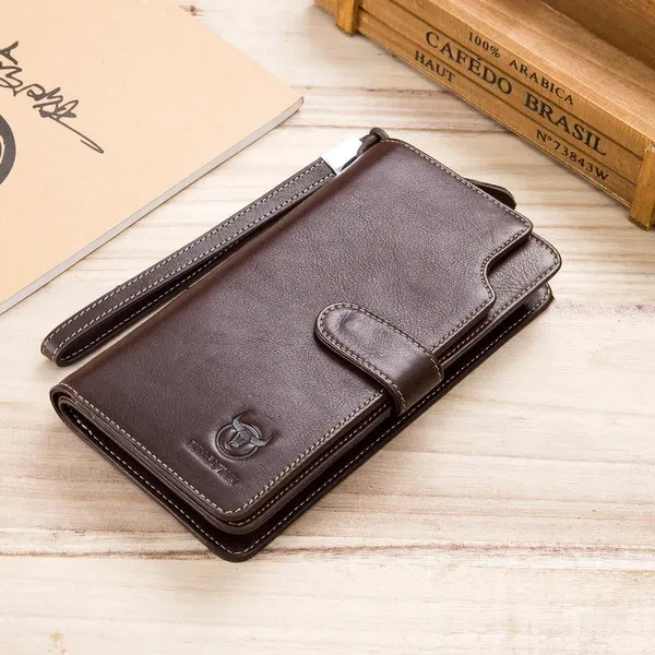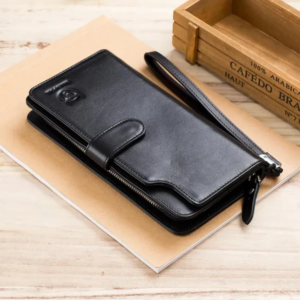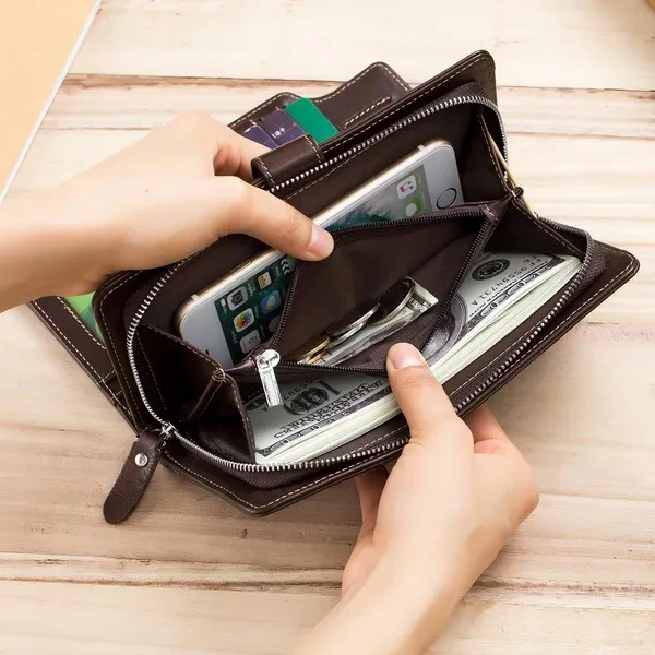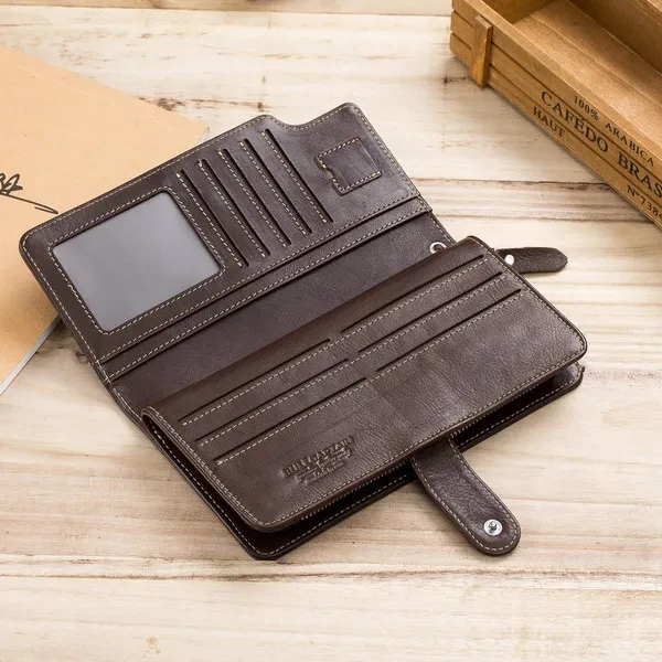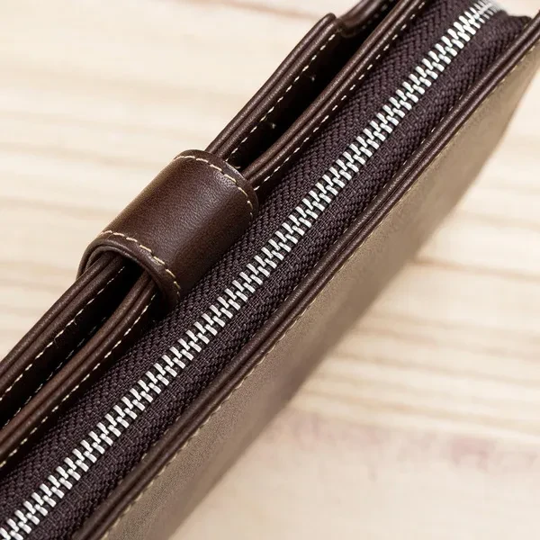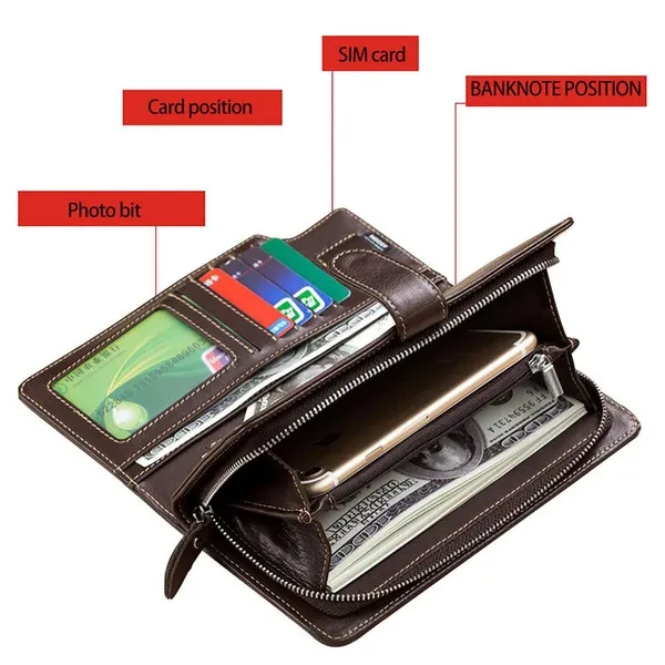 The wallet is equipped with a hand band, which can be removed for added security Wallets for Men: Your money and credit card deserves a cozy home, so get this long Wallet for them,The wallet is a Personalized and Unique gift for men Genuine Leather Wallet: This mens wallet sourced, The first layer is made of cowhide, good stitching and well made, durable for the long-lasting use Card Holder Wallet: This card holder wallet has 1 big money bag, 16 card slots,1 ID Window,1 Coin Pocket,1 zippered compartment. This card holder wallet has 1 big money bag, 16 card slots,1 ID window,1 coin pocket,1 zippered compartment. Enough to accommodate daily needs Wallet size: 7.6 inch(Length) x 4 inch(Wide) x 1.1 inch(Height), which can easily accommodate a normal mobile phone Zip Around Wallet: It is a perfect size long wallet for men, of great comfortable hand-held and clutch feeling, keep your cash and cards close to you. With the zip-around design, you can easily get the valuables while needed