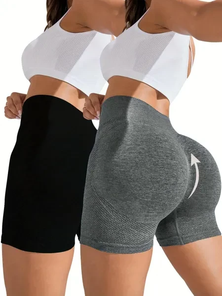 High Waisted Seamless Sports Shorts - Active Shorts with Butt Lifting, Slimming, Stretchy, and Sweat-Wicking Fabric for Fitness, Gym, and Yoga - Solid Colors