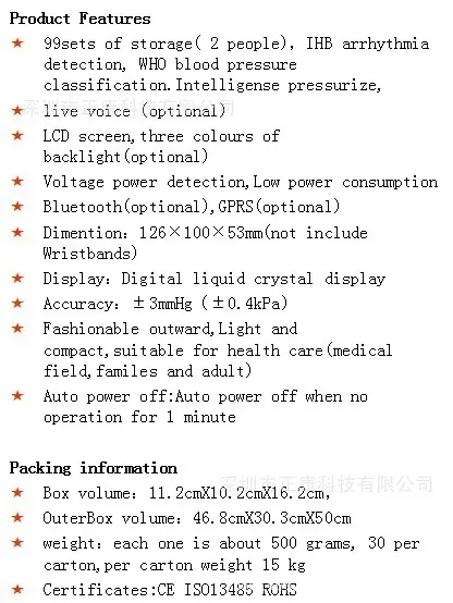 Measuring range: high/low blood pressure: 20mmHg~280mmHg