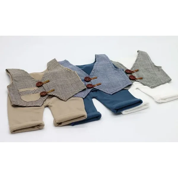 Pants and Vest Set Accessories for Newborn Photography Props Costume Infant Baby Boy Little Gentleman Outfit 100% brand new and high quality Features: Great for showing your cute personality when photography Wonderful gift for your baby Specifications: Material:Cotton blend Size: One Size,Suitable for 0-1 month old baby Color: See the pictures Quantity: 2 Pcs/ set Note: 1.Transition: 1cm=10mm=0.39inch 2.Please allow 0-1cm error due to manual measurement. pls make sure you do not mind before you bid. 3.Due to the difference between different monitors, the picture may not reflect the actual color of the item. Thank you! Package includes: 1 pc× Vest 1 pc× Pants