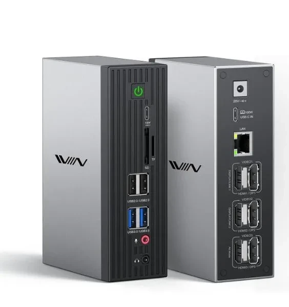 The item in this listing is an Open Box (packaging maybe slightly distressed). The unit powers on with factory settings restored and includes the original accessories. The unit may have some minor cosmetic marks. Product comes with a Minimum 30 days warranty • 19 ports usb c dock expands one of the USB C port on your USB C laptop to 2 Type-C ports(host and USB C data port), 3x HDMI, 3x Displayport, 2x USB3.0/USB2.0,100W Power Deliver, Gigabit Ethernet, SD/Micro SD card slots, 3.5 mm Audio ports.this docking station keep everything connect that much easier • one upstream port provides an enormous 100W of charging power for laptop; another downstream usb c data port will provide 15W enough fast charging and high-speed data transfer for your smartphones. • Perfect clear sound quality like the original, using 3.5mm microphone & earphone jack to listen to music or answer phone calls.also supports volume control • Surfing at Full Speed, obtain faster connection speeds up to 1000Mbps/ 100Mbps/10Mbps, lower latency, solid connection ensure a smooth performance, gaming or working • 2*USB 3.0Data ports: Sync data at blazing speeds up to 5Gbps, fast enough to transfer an HD movie in seconds. 2*USB 2.0 speed up to 480Mbs, can connect hard driver, u-disk, keyboard, mouse ect. • Compatible Operating Systems:Windows 7/8/10 above,Mac 10.0 above,Ubuntu,Chrome os,Android ect. • Ensure that your Host's USB-C port is fully featured and support "DP Alt mode" (USB 3.1 Type C Gen2/USB4/ Thunderbolt 4/ Thunderbolt 3 those ports all support ) MPN: D6919 UPC: 654538476709