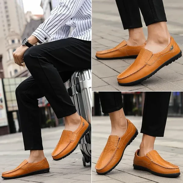 Welcome to LANBOO shop and enjoy your shopping moment~ Suitable season: All Seasons Toe shape: Round Head Style: Casual Upper material: Leather Color:Black,Dark brown,Light brown Material: The upper is made of high quality leather material, I believe you will be satisfied with its high quality. Anti-slip protection: The lightweight and non-slip sole made of polyurethane increases softness, flexible folding performance and shock absorption, which can provide better support and balance, and perfectly adapt to your daily needs. Fashion: With classic design, low-key and gentlemanly, it will never go out of fashion. It can be well matched with the clothes in your wardrobe. Color selection: Three colors are available, black, dark brown, light brown, you can choose the style that suits you~ Suitable for many occasions: indoor and outdoor activities, daily walks, travel and more. This makes a great holiday gift. This is a great gift idea for him! Just for Valentine's Day, Christmas, Thanksgiving, New Year's Day! If you want make a very correct choice you should choose by the size chart at the image !(If your feet have a bit fat, please choose one bigger size.)