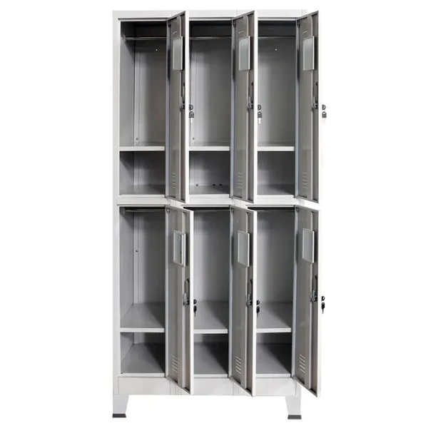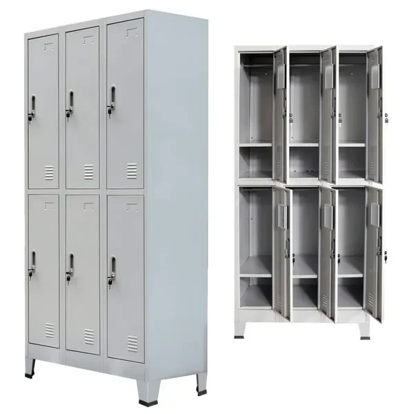 This locker cabinet will not only be ideal for sports locker rooms or company changing rooms, but can also add a cool, industrial touch to the office or school. With 6 separate compartments with doors, this locker cabinet has ample storage space for keeping clothes and other personal belongings safe. Each compartment has a hanger bar, a mirror and a name card holder. The plastic feet prevent your floors from getting scratched up. This locker cabinet is made of high-quality steel, making it durable as well as easy to clean. Assembly is easy. Colour: Grey Material: Steel Dimensions: 90 x 45 x 180 cm (W x D x H) With 6 hanging bars and 6 shelves With a mirror and a name card holder in each compartment With 6 lockable doors with an opening angle of 130° and 12 keys Maximum load capacity per shelf: 10 kg With plastic foot pads Easy assembly WARNING: In order to prevent overturning, this product must be used with the wall attachment device provided More details about preventing your furniture from tipping over can be found here https://www.vidaxl.co.uk/media/wysiwyg/documents/prevent_tipping_over/UK.p