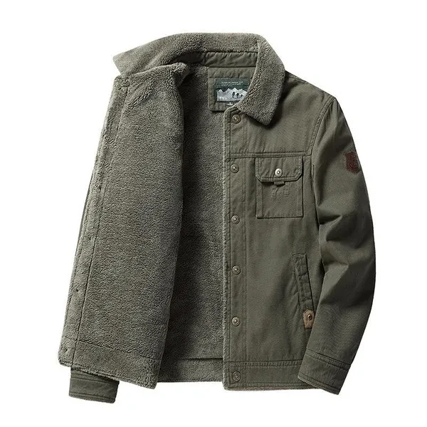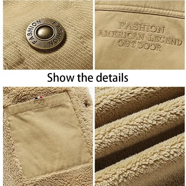 Men Fashion Jacket Casual Warm Fleece-lined Jacket Oversized Coat with Lapels M-5XL