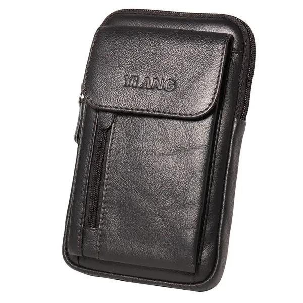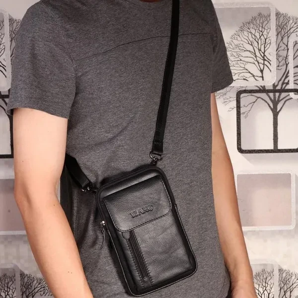Men Leather Crossbody Messenger Mini Shoulder Bag Casual Multi-Function Travel Cell Phone Case Belt Purse Pouch Male Hook Waist Pack Bag