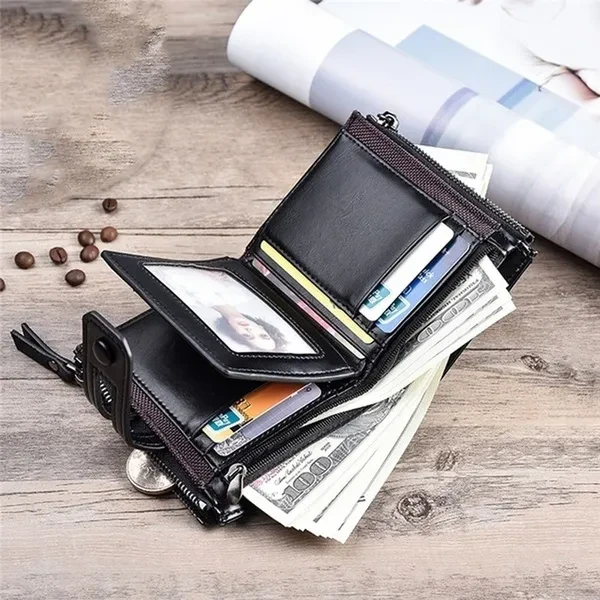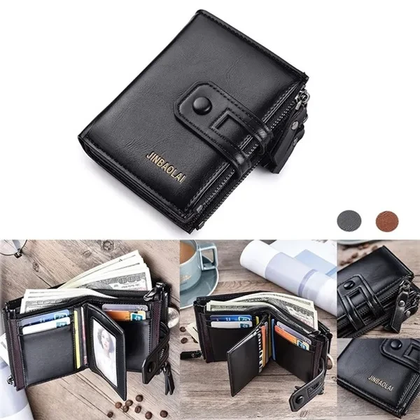 Men Short Leather Wallet Zipper Multi-purse Wallets Large-capacity Multi-card Holder Money Clip