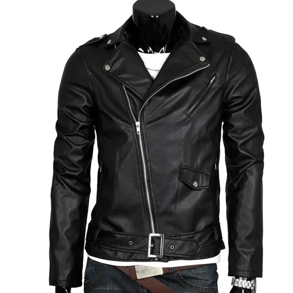 Men's Autumn Leather Jacket Slim Fit Motorcycle Jacket Zipper Casual Coat