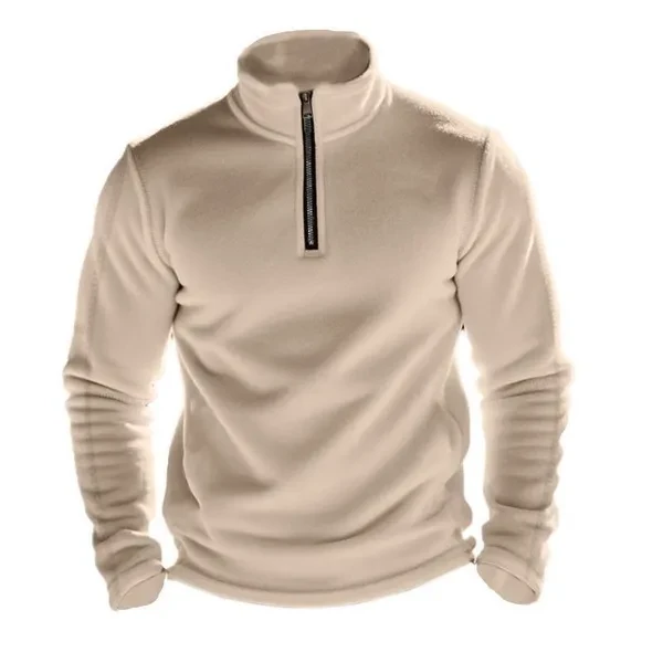 Men's Autumn Winter Stand-up Collar Semi-zipper Long Sleeved Sweaters Pure Color Warm Sweatshirts Men's Fleece Tops