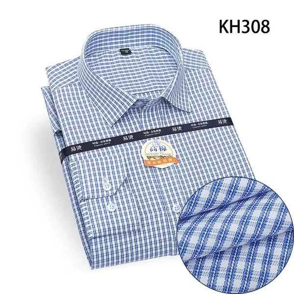 Mens Dress Shirts Formal Business Long Sleeves No Iron Plaids Casual Shirts Top